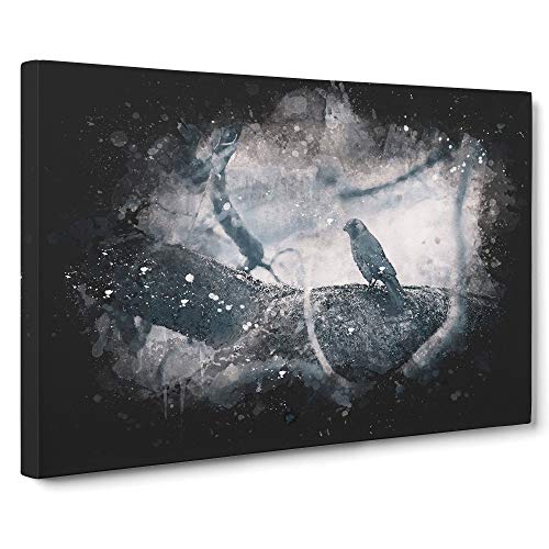 Bird in a Winter Tree Paint Splash Canvas Print | Gallery Wrapped 30mm Frame Wall Art | 30x20 inches | Ready to Hang | Modern Animals Picture | Living Room Bedroom Lounge Office
