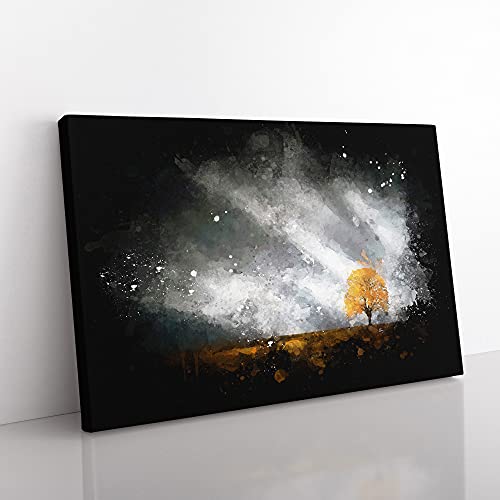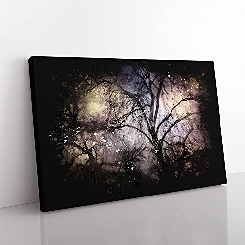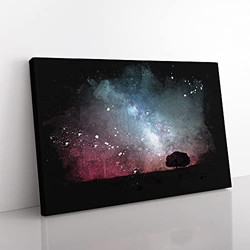 Big Box Art Stars Above a Lone Tree Paint Splash Canvas Wall Art Print Ready to Hang Picture, 76 x 50 cm (30 x 20 Inch), Black, Grey, Maroon