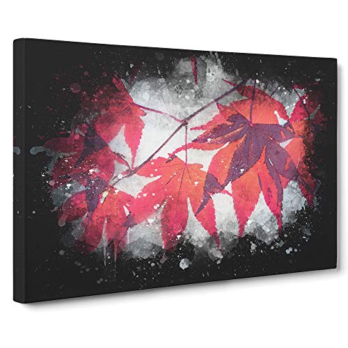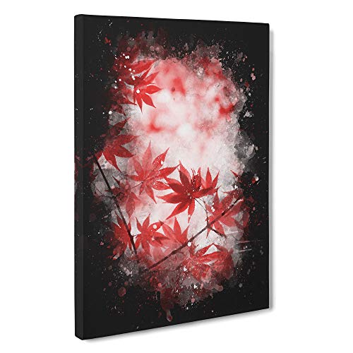 Red Leaves of a Maple Tree Paint Splash Canvas Print | Gallery Wrapped 30mm Frame Wall Art | 30x20 inches | Ready to Hang | Modern Floral Picture | Living Room Bedroom Lounge Office