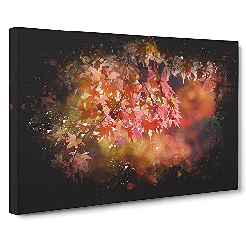 Leaves of a Maple Tree Paint Splash Canvas Print | Gallery Wrapped 30mm Frame Wall Art | 30x20 inches | Ready to Hang | Modern Floral Picture | Living Room Bedroom Lounge Office