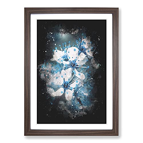 Big Box Art Blue Cherry Tree Flowers Paint Splash Framed Wall Art Picture Print Ready to Hang, Walnut A2 (62 x 45 cm)