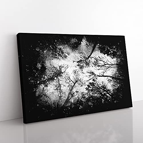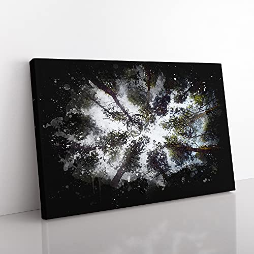 Big Box Art Tree Tops Paint Splash Canvas Wall Art Print Ready to Hang Picture, 76 x 50 cm (30 x 20 Inch), White, Grey, Olive, Green, Black