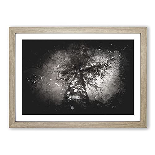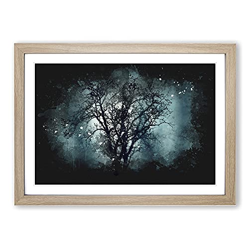 Big Box Art Tree at Dusk Paint Splash Framed Wall Art Picture Print Ready to Hang, Oak A2 (62 x 45 cm)