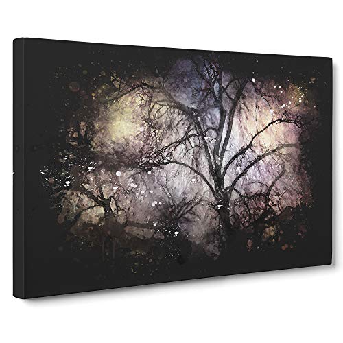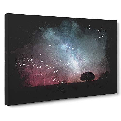 Stars Above a Lone Tree Paint Splash Canvas Print | Gallery Wrapped 30mm Frame Wall Art | 30x20 inches | Ready to Hang | Modern Space Picture | Living Room Bedroom Lounge Office