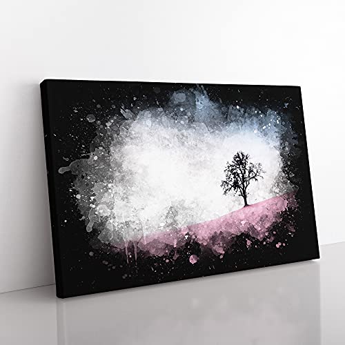 Big Box Art A Winter Tree at Sunset Paint Splash Canvas Wall Art Print Ready to Hang Picture, 76 x 50 cm (30 x 20 Inch), White, Pink, Grey