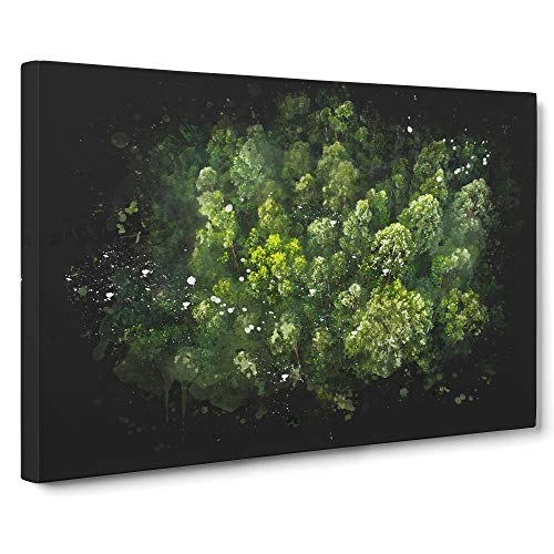 Green Tree Tops Paint Splash Canvas Print | Gallery Wrapped 30mm Frame Wall Art | 30x20 inches | Ready to Hang | Modern Landscape Picture | Living Room Bedroom Lounge Office