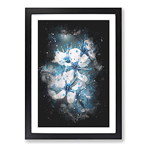 Big Box Art Blue Cherry Tree Flowers Paint Splash Framed Wall Art Picture Print Ready to Hang, Black A2 (62 x 45 cm)