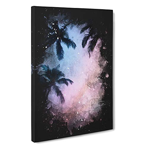 Palm Tree Paradise Paint Splash Canvas Print | Gallery Wrapped 30mm Frame Wall Art | 30x20 inches | Ready to Hang | Modern Floral Picture | Living Room Bedroom Lounge Office