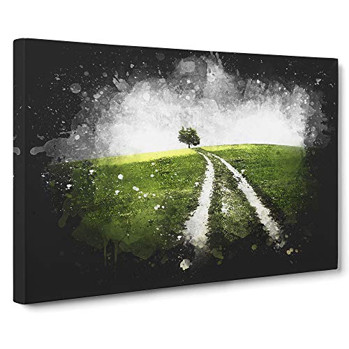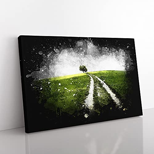Path to a Lone Tree Paint Splash Canvas Print for Living Room Bedroom Home Office Décor, Wall Art Picture Ready to Hang, 30 x 20 Inch (76 x 50 cm)