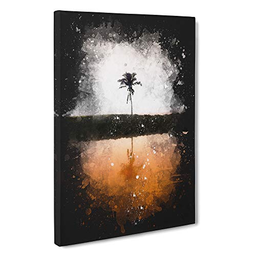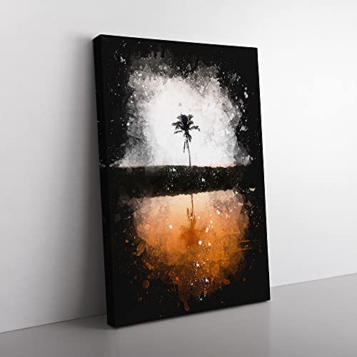Reflection of a Palm Tree in Hawaii Paint Splash Canvas Print for Living Room Bedroom Home Office Décor, Wall Art Picture Ready to Hang, 30 x 20 Inch (76 x 50 cm)