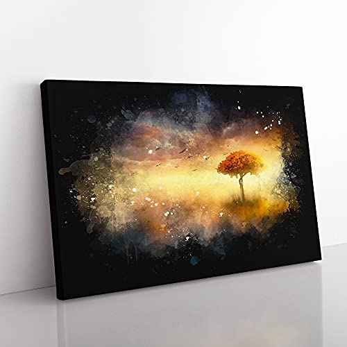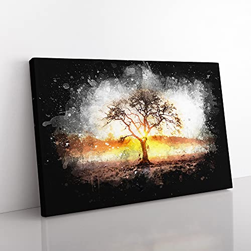 Big Box Art Lone Tree at Dusk Paint Splash Canvas Wall Art Print Ready to Hang Picture, 76 x 50 cm (30 x 20 Inch), Black, Grey, Maroon, Brown