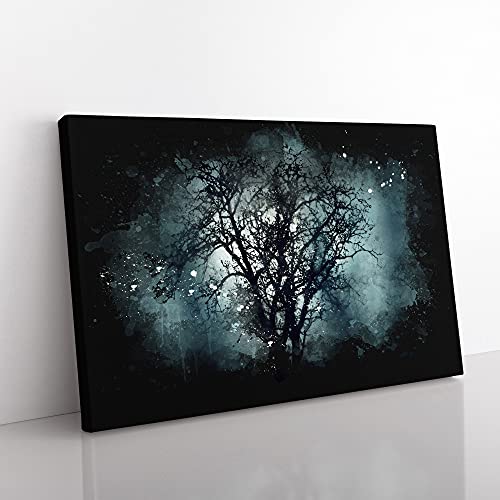 Big Box Art Tree at Dusk Paint Splash Canvas Wall Art Print Ready to Hang Picture, 76 x 50 cm (30 x 20 Inch), Black, Black, Teal
