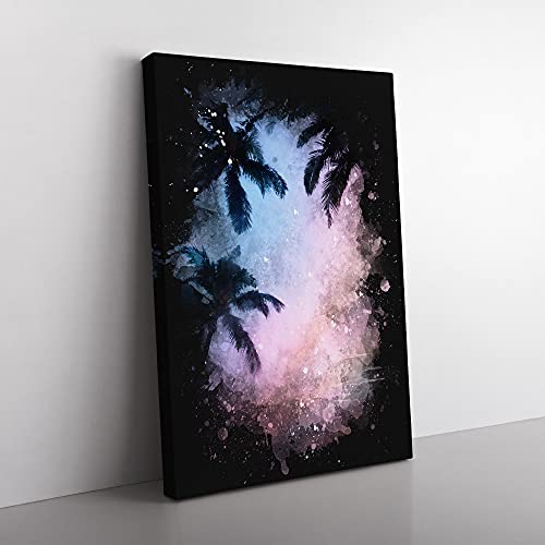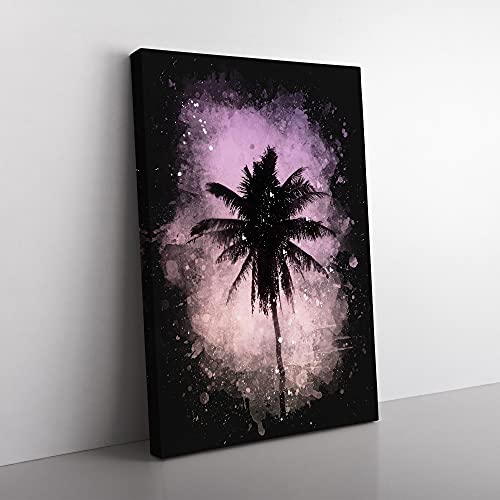 Big Box Art Summer Palm Tree Paint Splash Canvas Wall Art Print Ready to Hang Picture, 76 x 50 cm (30 x 20 Inch), Pink, Purple, Mauve, Brown, Purple