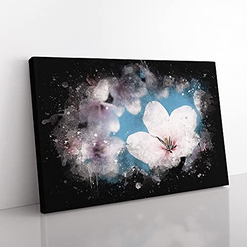 Branch of a White Cherry Blossom Tree Paint Splash Canvas Print for Living Room Bedroom Home Office Décor, Wall Art Picture Ready to Hang, 30 x 20 Inch (76 x 50 cm)