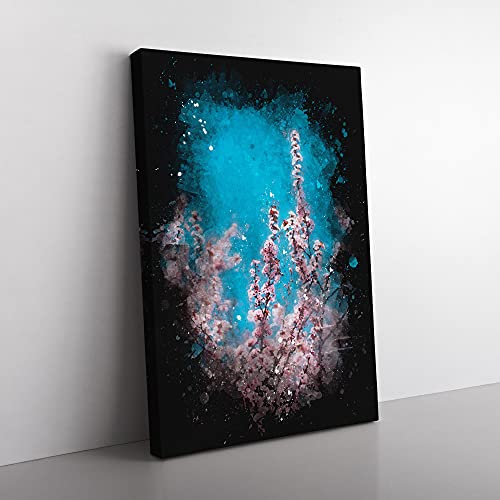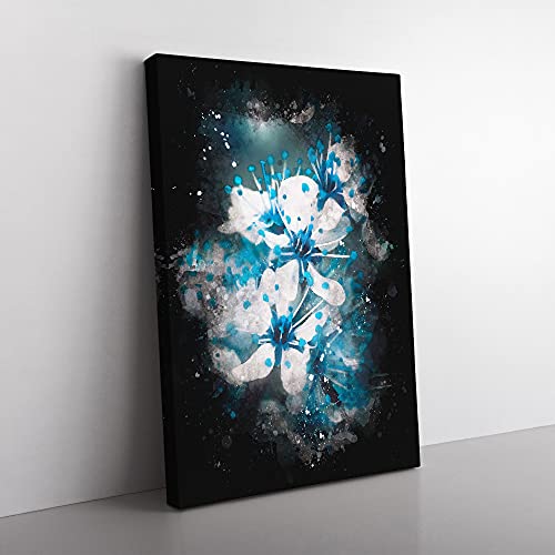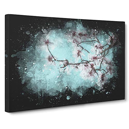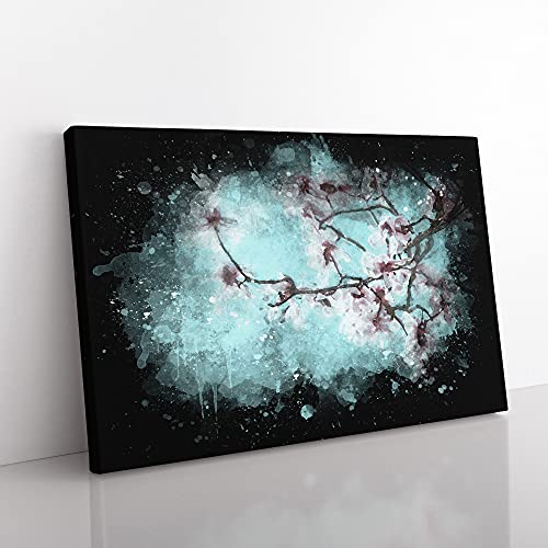Big Box Art Blue Cherry Tree Flowers Paint Splash Canvas Wall Art Print Ready to Hang Picture, 76 x 50 cm (30 x 20 Inch), Black, Turquoise, Teal