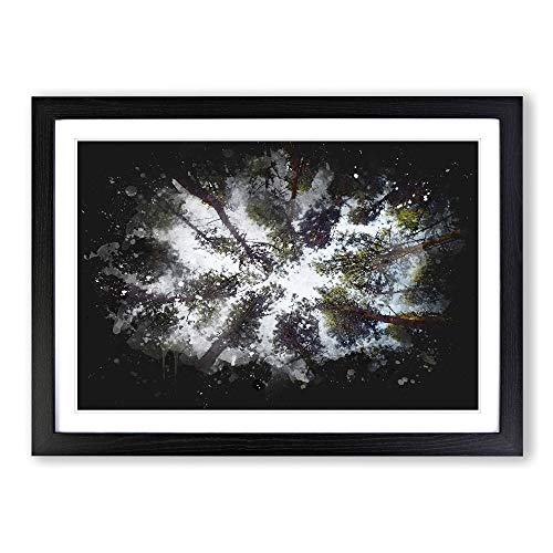 Tree Tops Paint Splash Framed Print | A2 Black Framed Wall Art | Ready to Hang | Modern Floral Picture | Living Room Bedroom Lounge Office
