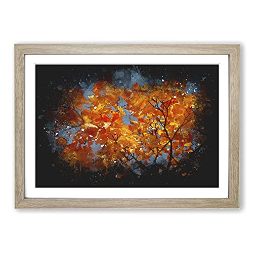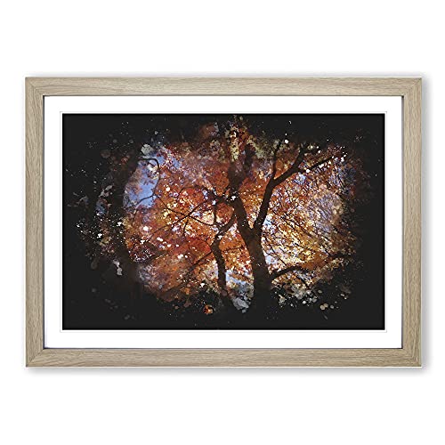 Big Box Art Maple Tree Vol.3 Paint Splash Framed Wall Art Picture Print Ready to Hang, Oak A2 (62 x 45 cm)