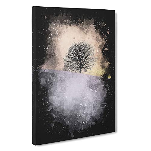 Tree At Dusk Paint Splash Canvas Print | Gallery Wrapped 30mm Frame Wall Art | 30x20 inches | Ready to Hang | Modern Landscape Picture | Living Room Bedroom Lounge Office