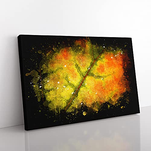 Big Box Art The Leaf of a Sycamore Tree Paint Splash Canvas Wall Art Print Ready to Hang Picture, 76 x 50 cm (30 x 20 Inch), Orange, Yellow, Orange, Yellow