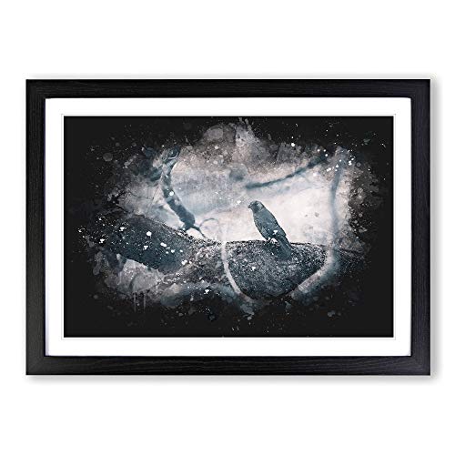 Bird on The Tree Paint Splash Framed Print | A2 Black Framed Wall Art | Ready to Hang | Modern Floral Picture | Living Room Bedroom Lounge Office
