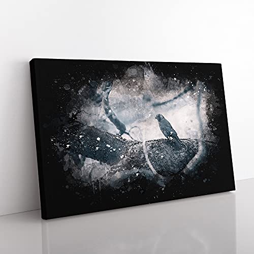 Big Box Art Bird in a Winter Tree Paint Splash Canvas Wall Art Print Ready to Hang Picture, 76 x 50 cm (30 x 20 Inch), White, Grey, Black