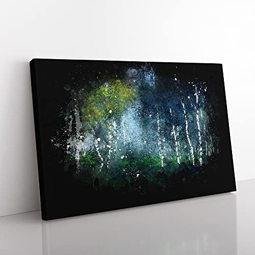 Big Box Art Wonderous Birch Tree Forest Paint Splash Canvas Wall Art Print Ready to Hang Picture, 76 x 50 cm (30 x 20 Inch), Blue, Teal, Blue, Green, Blue