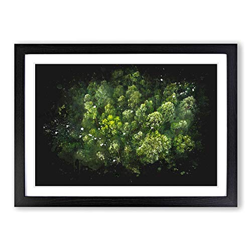 Green Tree Tops Paint Splash Framed Print | A2 Black Framed Wall Art | Ready to Hang | Modern Floral Picture | Living Room Bedroom Lounge Office