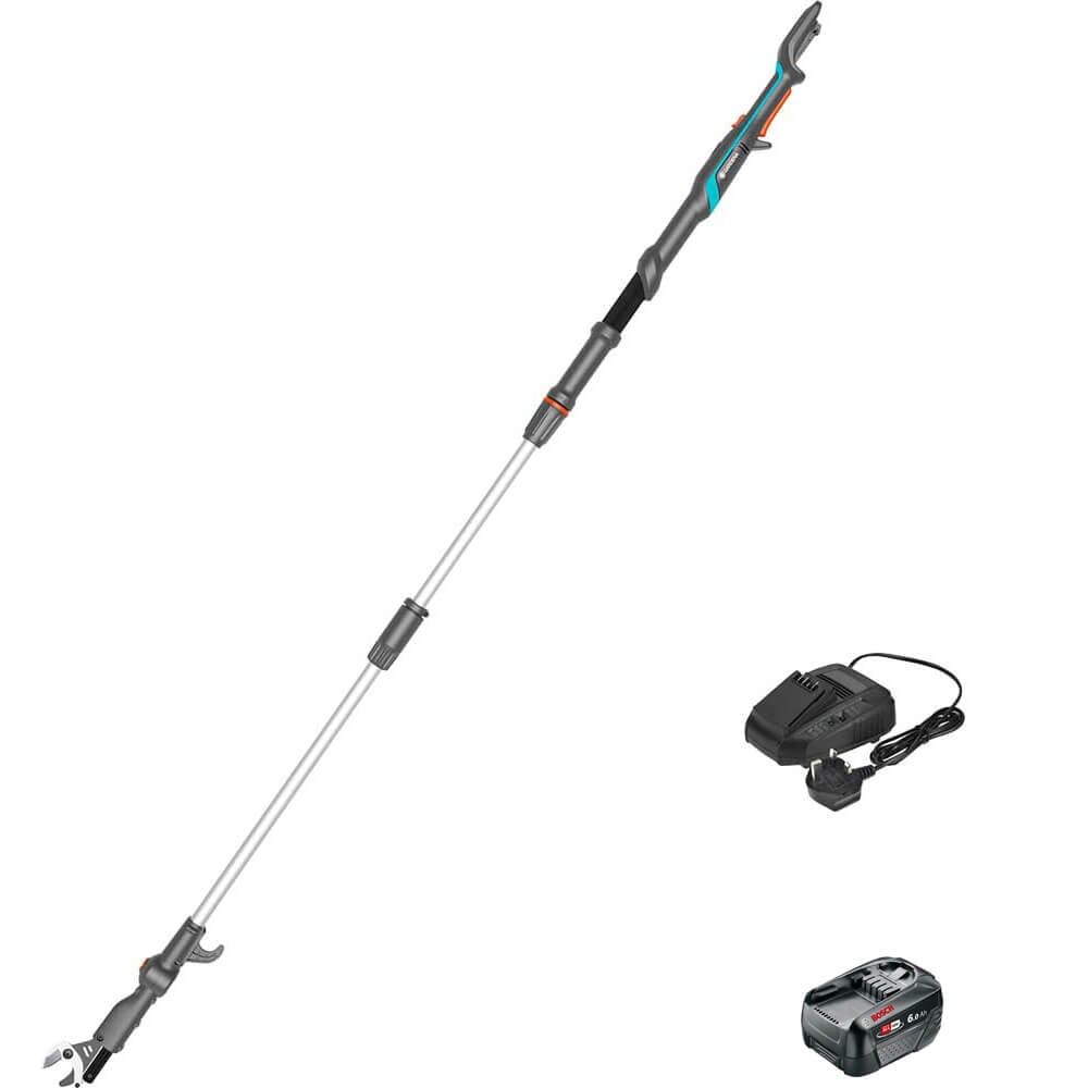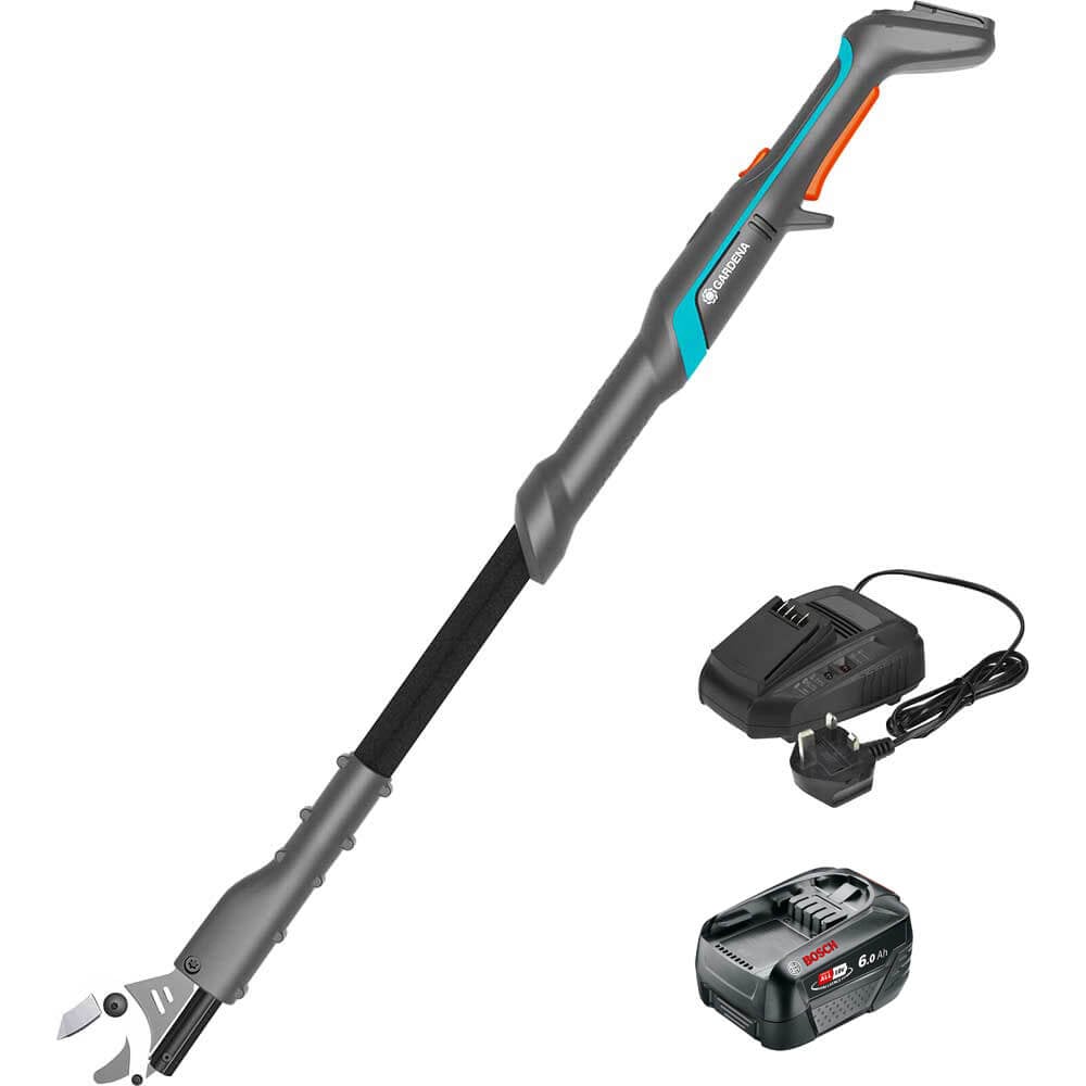Gardena TCS 20/18 P4A 18v Cordless Telescopic Tree Pruner 200mm 1 x 6ah Li-ion Battery Charger