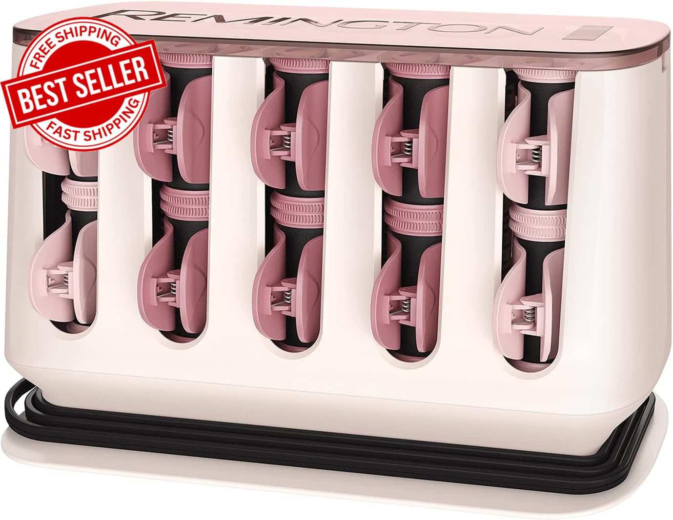 Remington Heated Hair Rollers (Set of 12 velvet flocked rollers in 2 jumbo sizes (35mm & 40mm), Ceramic and Ionic Technology, Wax core, 12 pins and clips included, pink/black) H5670