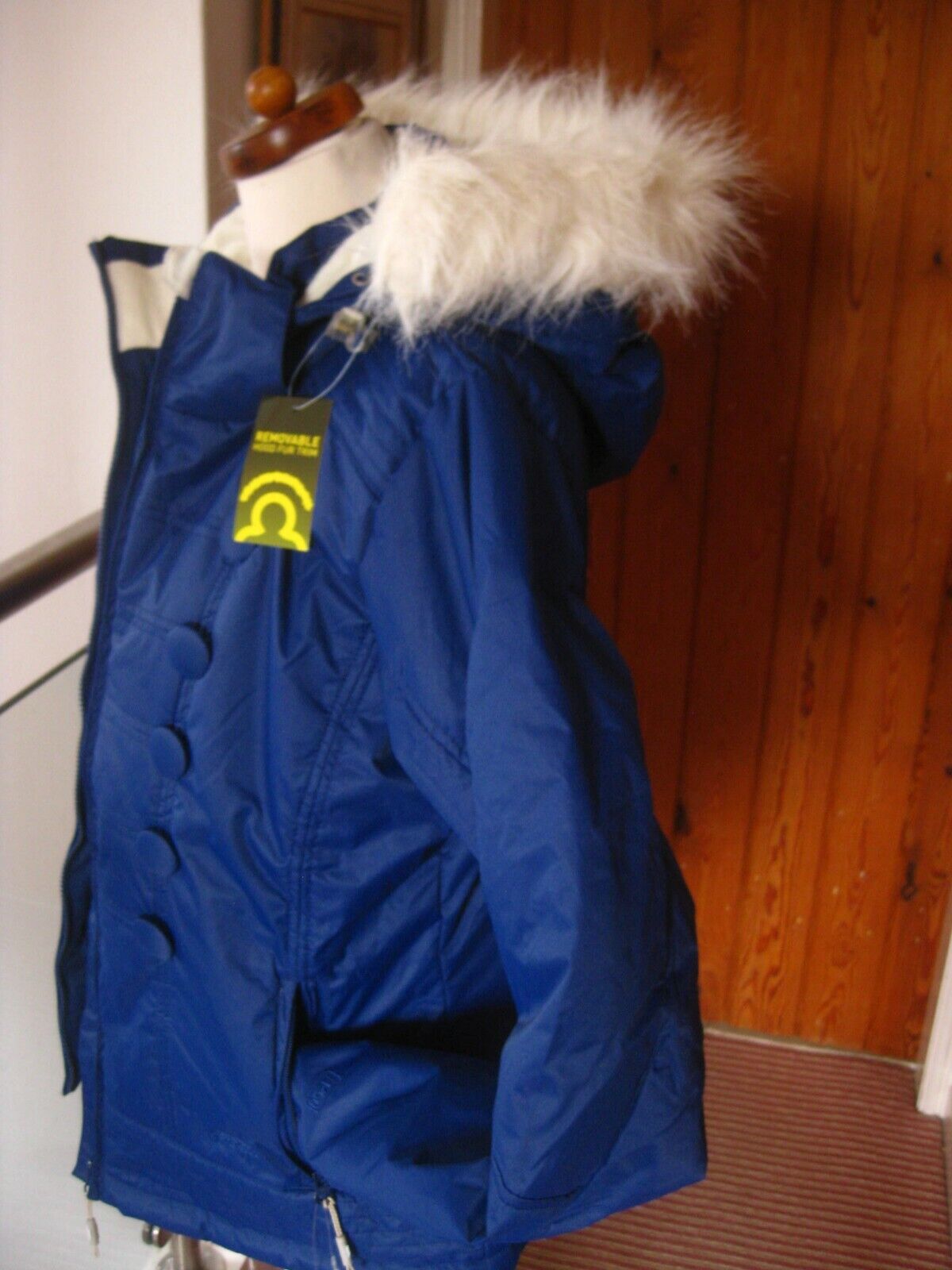 NEW SKI JACKET COAT PARKA NALA puffa BNWT fur hood blue 10 12 small TRESPASS