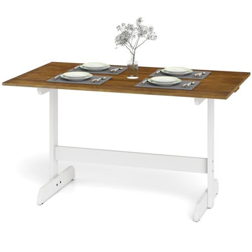 COSTWAY 140 x 81cm Dining Table for 4-6 People, Rectangular Kitchen Tables with Splice Boards Tabletop & Trestle Base, Wooden Dinner Table for Home Dining Room Restaurant