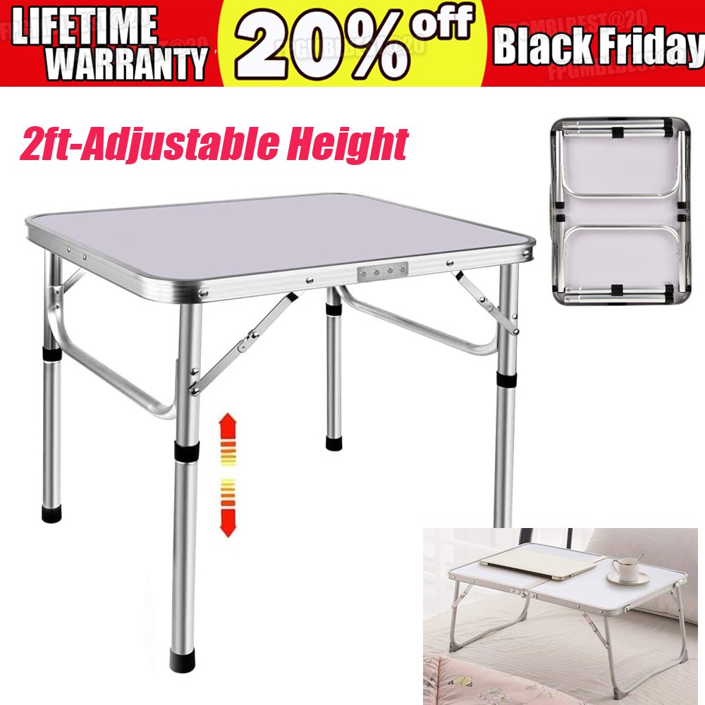 2ft Folding Camping Table Trestle Table with Adjustable Height(60x45x26cm/56cm), Portable Foldable Picnic Tables for Outdoor Indoor Kitchen Garden Party Dinning, with Carrying Handle, Easy to Clean