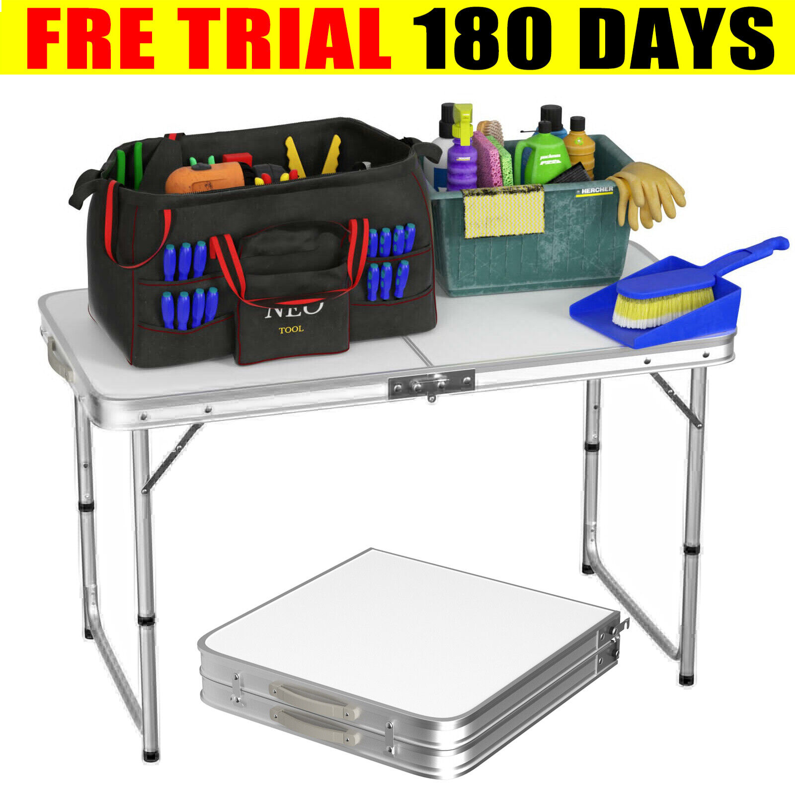 Folding Camping Table with Adjustable Height, Portable Foldable Trestle Picnic Tables Kitchen Dining Garden Potting Table Outdoor Indoor, Aluminium Work Top Table Desk, 2 Height 26"/14" (67cm/37cm)