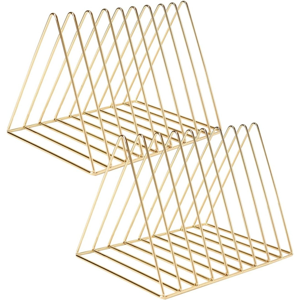 2 Pack 9 Slot Gold Magazine Holder,Desktop File Sorter Organizer Triangle Bookshelf Decor Home Office