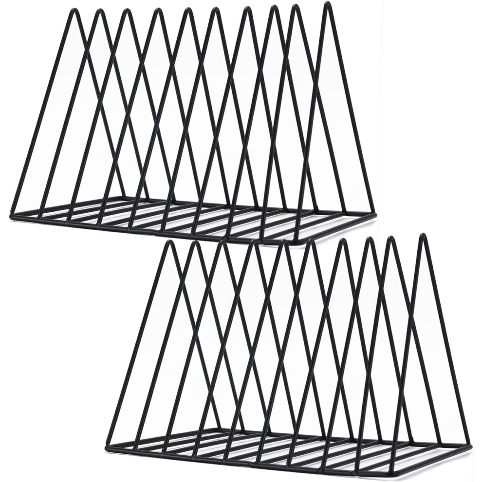 2 Pack 9 Slot Black Magazine Holder,Desktop File Sorter Organizer Triangle Bookshelf Decor Home Office