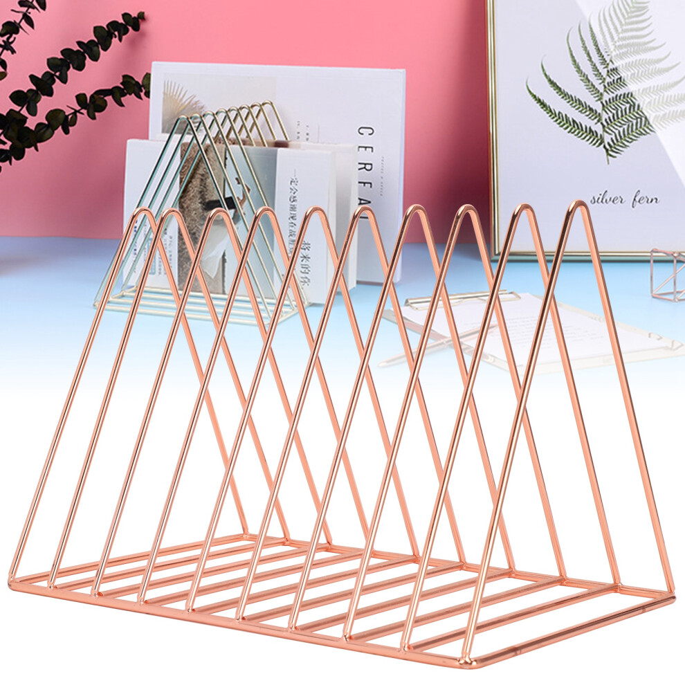 Triangle Metal Bookshelf Rose Gold 20.1x25.6x17.8cm Desktop Storage Rack