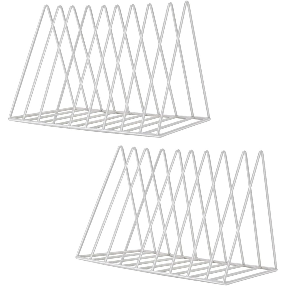 2 Pack 9 Slot White Magazine Holder,Desktop File Sorter Organizer Triangle Bookshelf Decor Home Office
