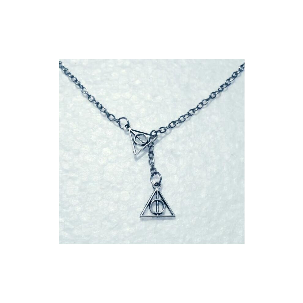 Triangle Movie Jewelry The Deathly Hallows Charm Double Cross Pendant Adjustable Lariat Chain Necklace