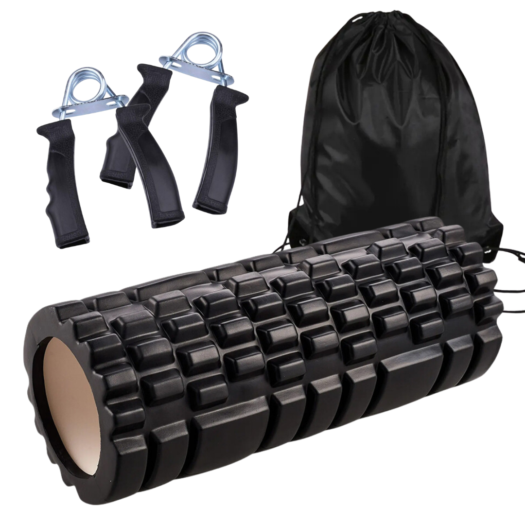 Foam Roller Deep Tissue Massage Grid + Hand Gripper & FREE Bag Set Yoga Gym