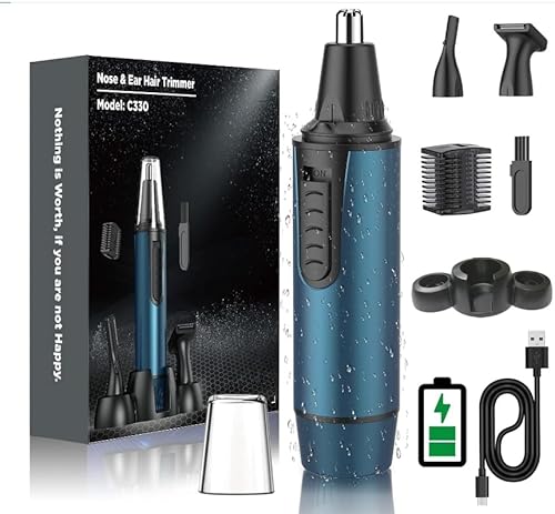 Rechargeable Nose Hair Trimmer for Men and Women, 3-in-1 Professional Painless Eyebrow and Facial Hair Trimmer, IPX7 Waterproof Nose Trimmer Men with Dual Edge Blades,Eyebrow Trimmer