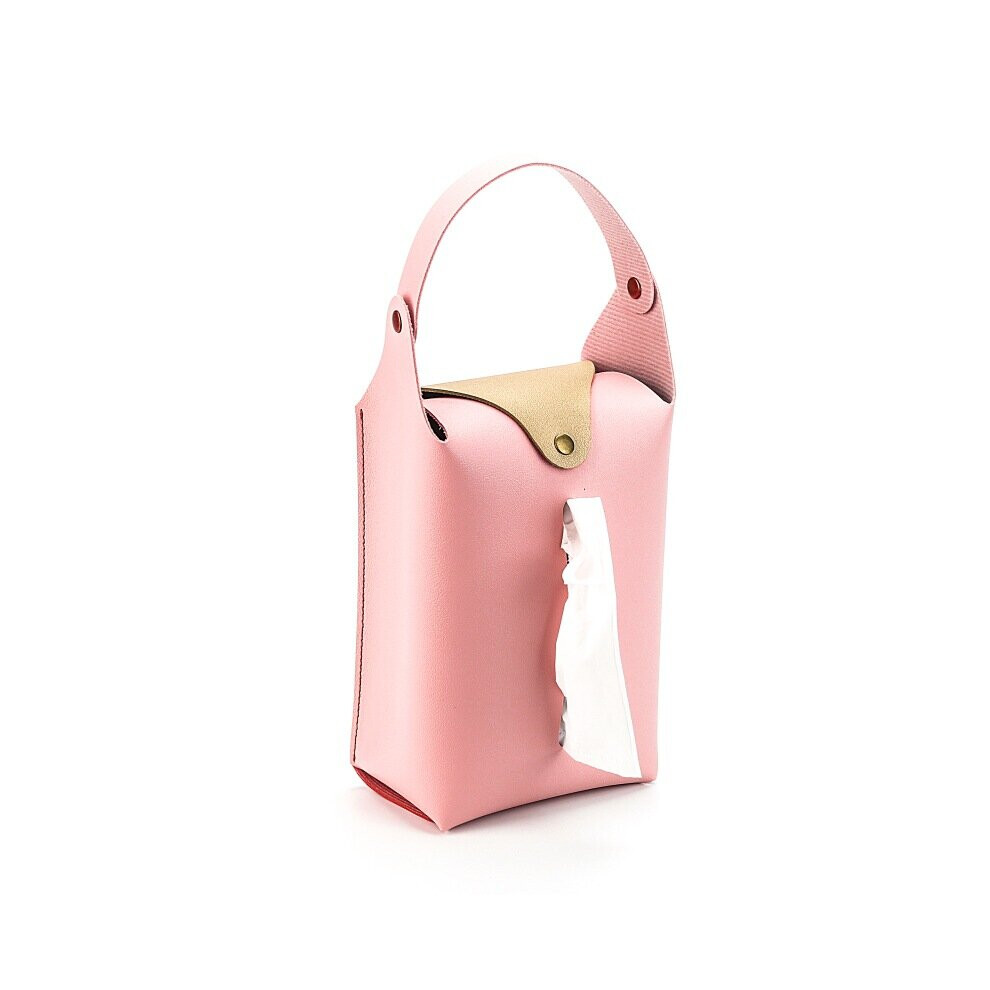 (a-pink) Car Headrest Tissue Holder Leather Paper Towel Storage Bag Family Trip Organizer Decor Vehicle Decoration Tissue Case