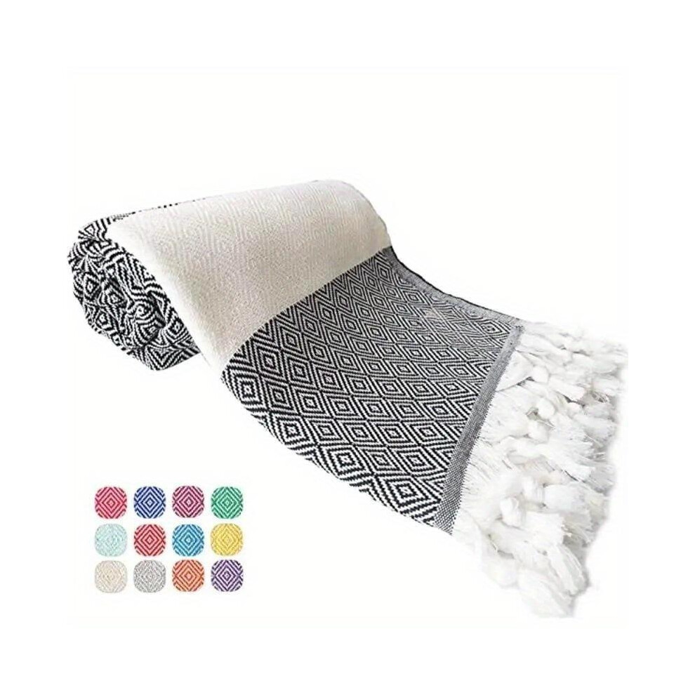 (Black, 190x76) Large Beach Towel Quick-Drying Microfiber For Camping Trip Yoga