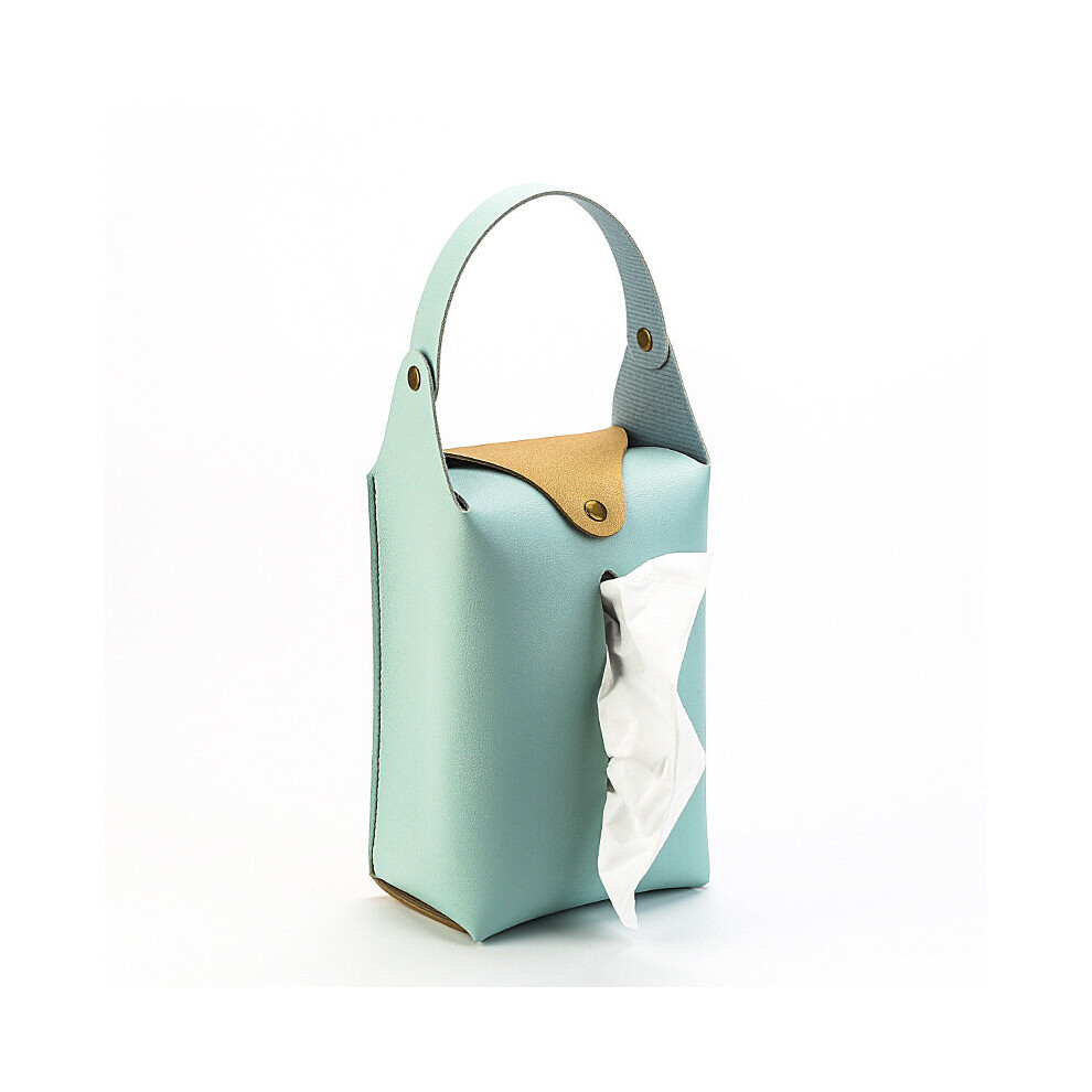 (a-Light blue) Car Headrest Tissue Holder Leather Paper Towel Storage Bag Family Trip Organizer Decor Vehicle Decoration Tissue Case