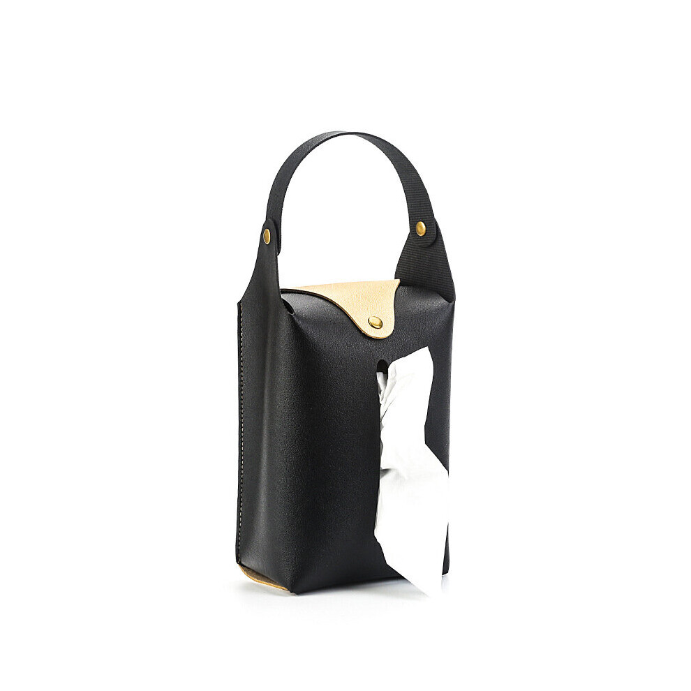 (a-black) Car Headrest Tissue Holder Leather Paper Towel Storage Bag Family Trip Organizer Decor Vehicle Decoration Tissue Case