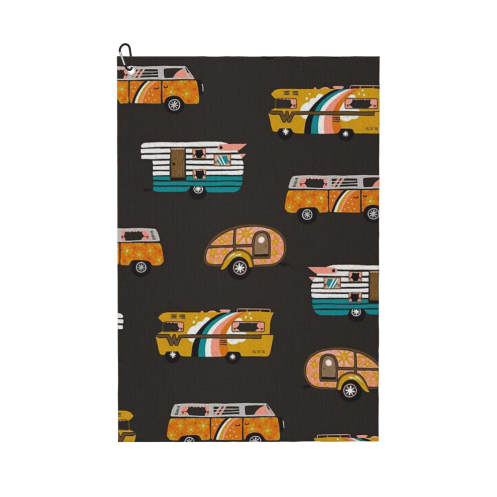 (Retro Road Trip ? Charcoal_12837) Golf Towel Funny Printed Cristmas Gift for Men Women Husband Dad Mom Birthday Golfers Fan