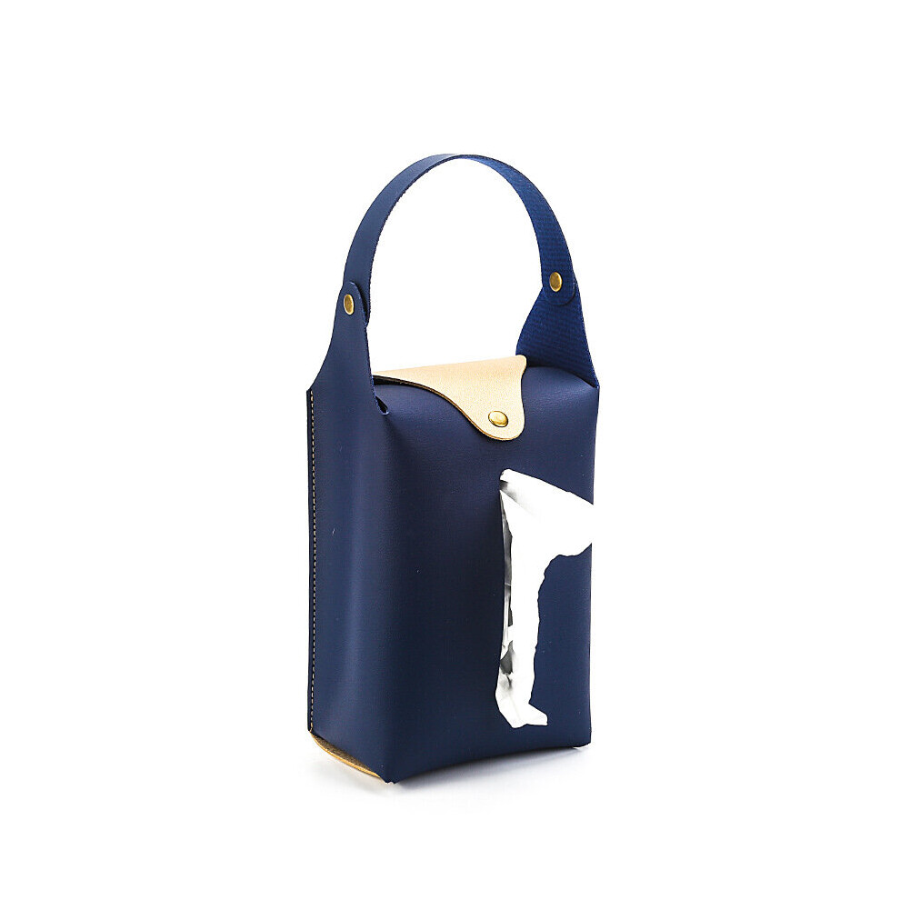 (a-Dark Blue) Car Headrest Tissue Holder Leather Paper Towel Storage Bag Family Trip Organizer Decor Vehicle Decoration Tissue Case
