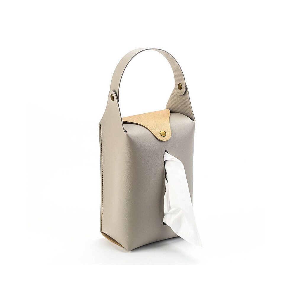 (a-grey) Car Headrest Tissue Holder Leather Paper Towel Storage Bag Family Trip Organizer Decor Vehicle Decoration Tissue Case