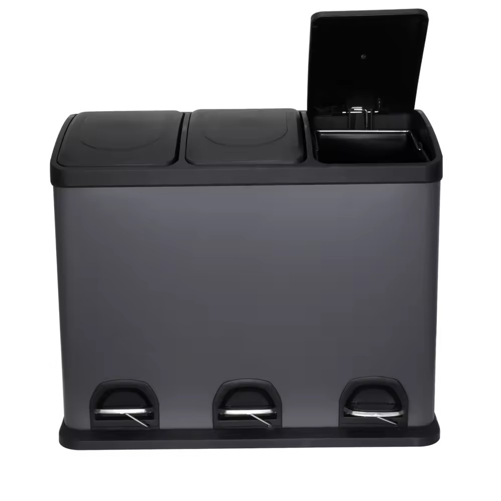 45L Stainless Steel Triple Compartment Pedal Bin