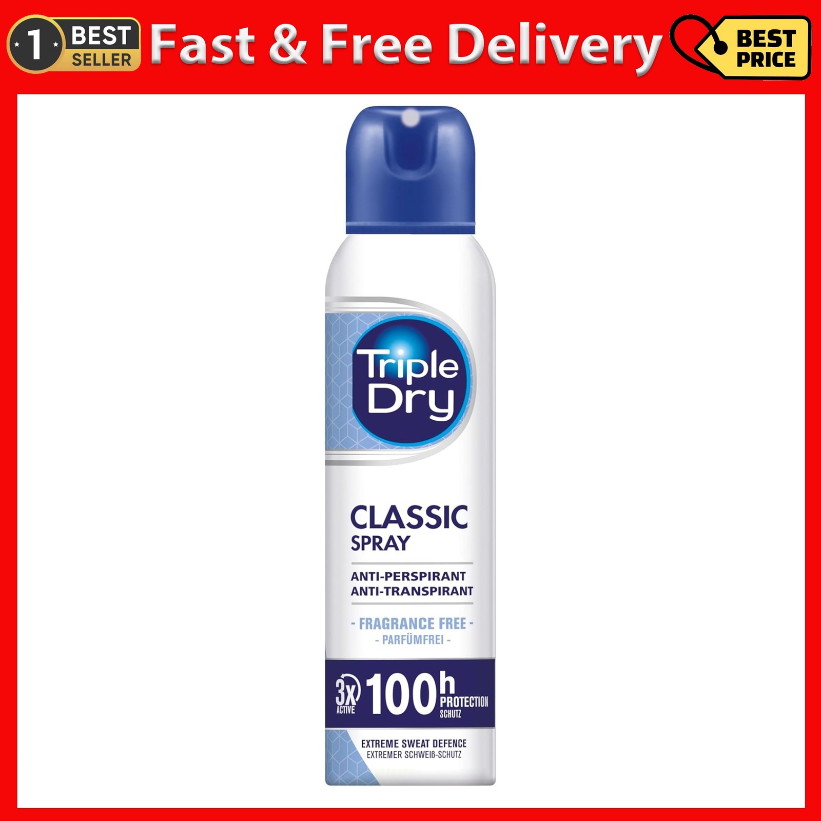 Triple Dry Classic Anti-Perspirant Spray 150ml | Unfragrance-Free | Clinically Proven | Unisex | 100-Hour Protection Against Excessive Sweating | Fights Odour | Triple Active Formula