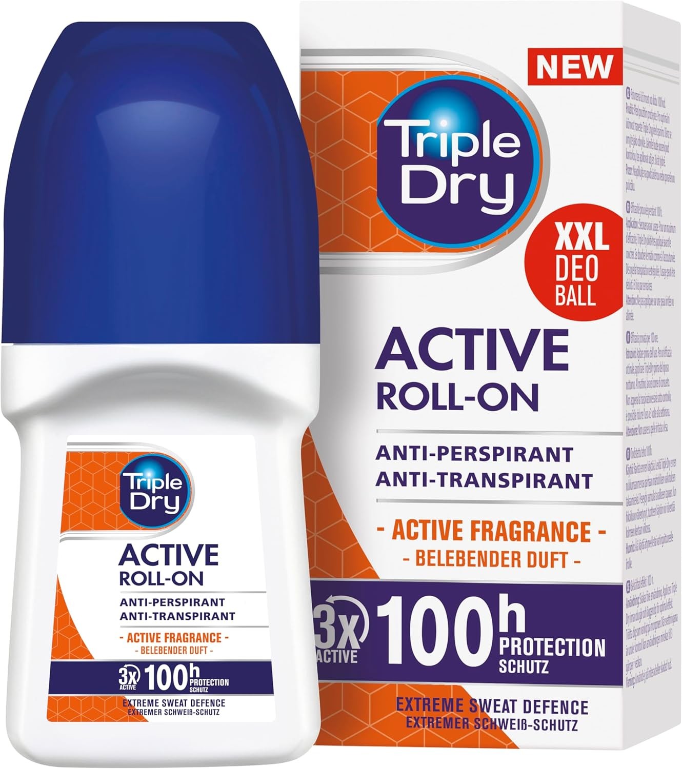 Triple Dry Men | Active Fragrance Anti-Perspirant Roll On 50ml | 100-Hour Protection Against Excessive Sweating | Fights Odour | Triple Active Formula | Clinically Proven | Male